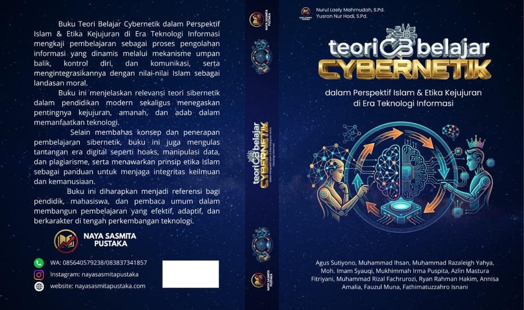 Buku Teori Belajar Cybernetik dalam Perspektif Islam & Etika Kejujuran di Era Teknologi Informasi mengkaji pembelajaran sebagai proses pengolahan informasi yang dinamis melalui mekanisme umpan balik, kontrol diri, dan komunikasi, serta mengintegrasikannya dengan nilai-nilai Islam sebagai landasan moral. Buku ini menjelaskan relevansi teori sibernetik dalam pendidikan modern sekaligus menegaskan pentingnya kejujuran, amanah, dan adab dalam memanfaatkan teknologi. Selain membahas konsep dan penerapan pembelajaran sibernetik, buku ini juga mengulas tantangan era digital seperti hoaks, manipulasi data, dan plagiarisme, serta menawarkan prinsip etika Islam sebagai panduan untuk menjaga integritas keilmuan dan kemanusiaan. Buku ini diharapkan menjadi referensi bagi pendidik, mahasiswa, dan pembaca umum dalam membangun pembelajaran yang efektif, adaptif, dan berkarakter di tengah perkembangan teknologi